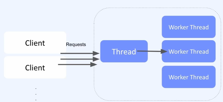 조금 더 세분화해보면 연결담당 스레드, 연결이후 처리담당 스레드인 워커스레드로 분리하여 운영한다.