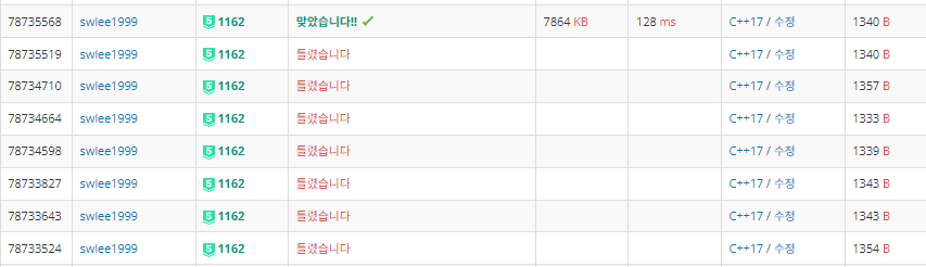 아무튼 다익스트라 문제가 나오면 memset을 쓸거면 0x3f로 초기화하는 방법을 다른 문제를 만났을때 써봐야겠다.