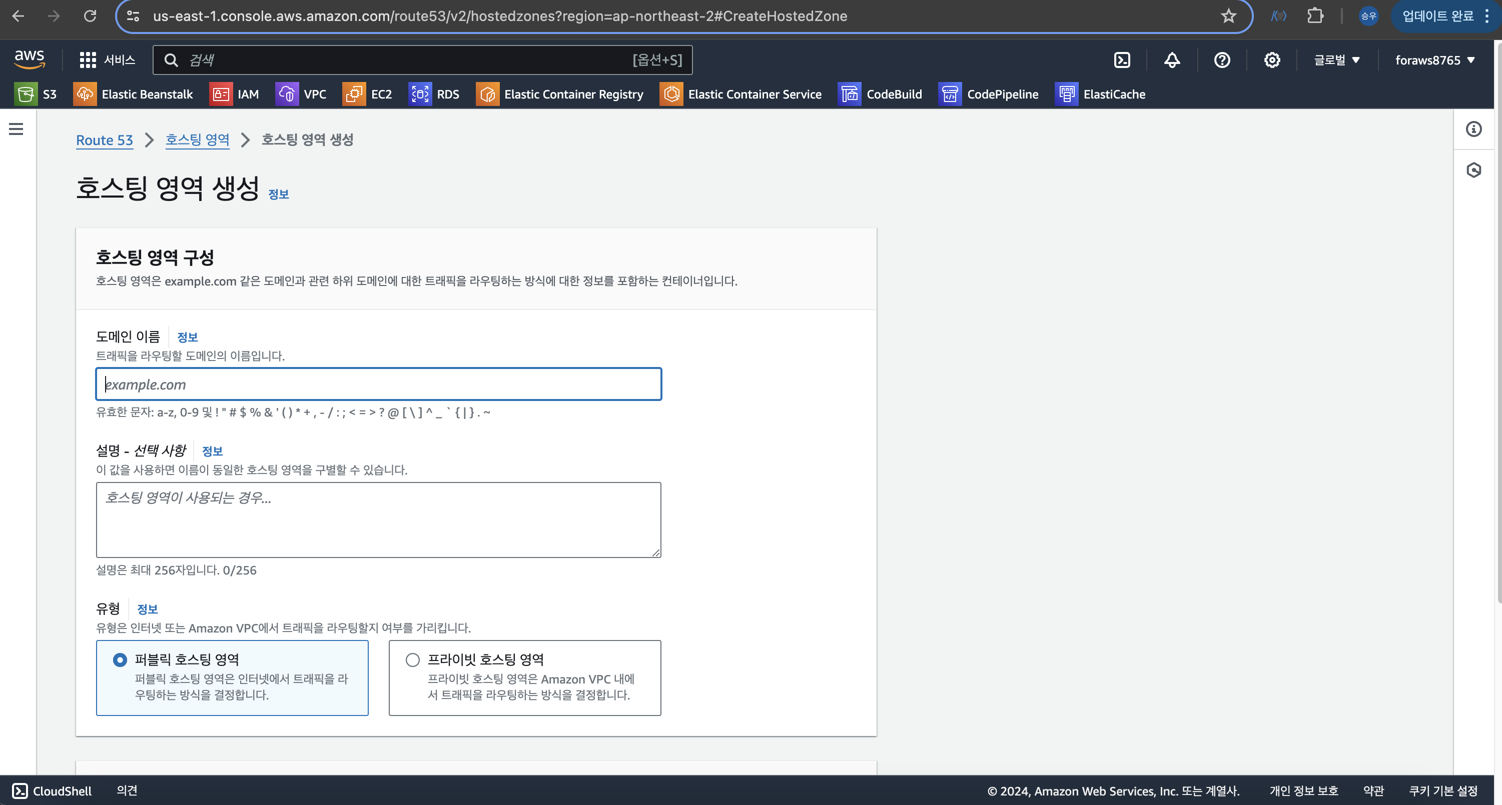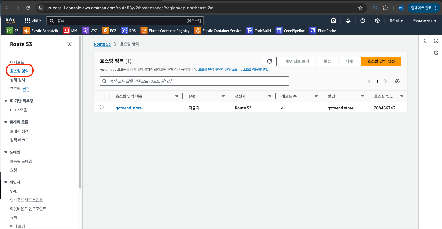 > Route 53 -> 호스팅 영역에서 구매한 도메인 등록할수 있음