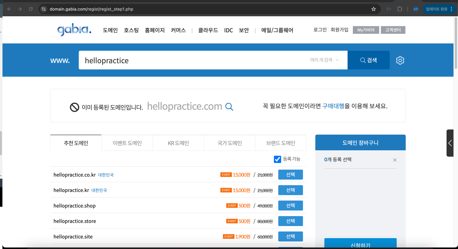 > 등록된 도메인에서 도메인을 구매할수도 있음(나는 가비아에서 구매했으므로 패스)