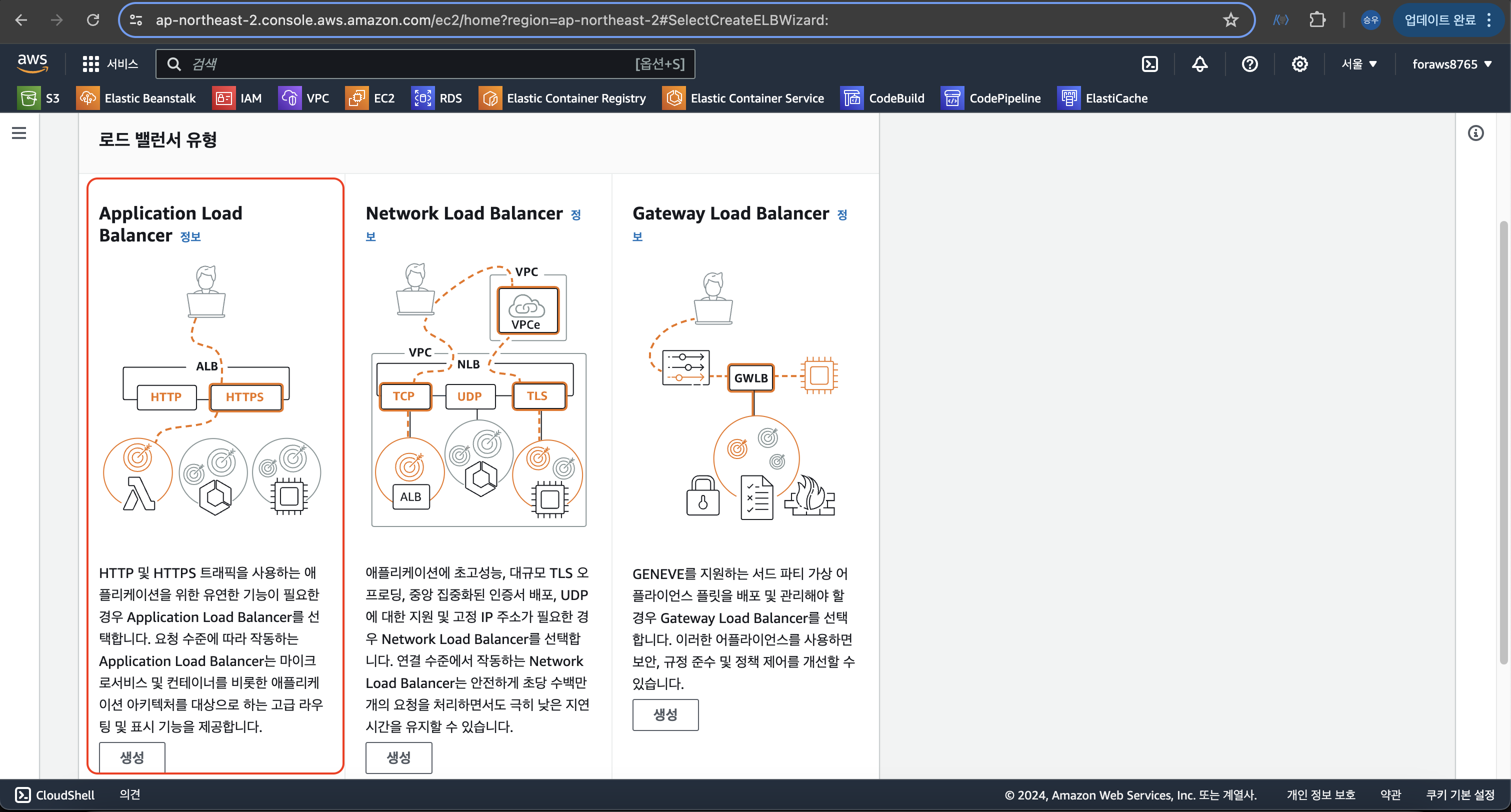 로드 밸런서 생성 (다시 돌아와서)