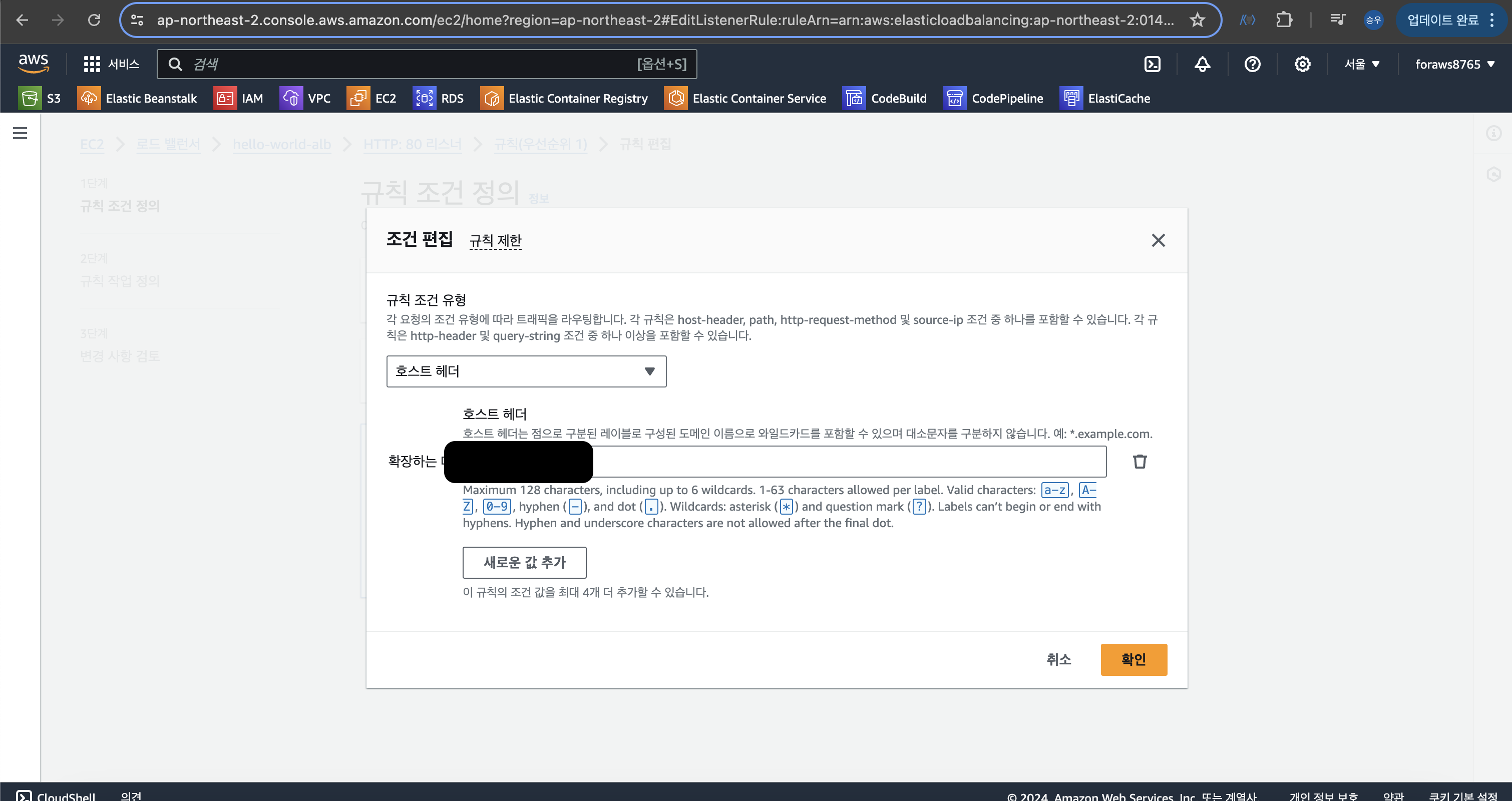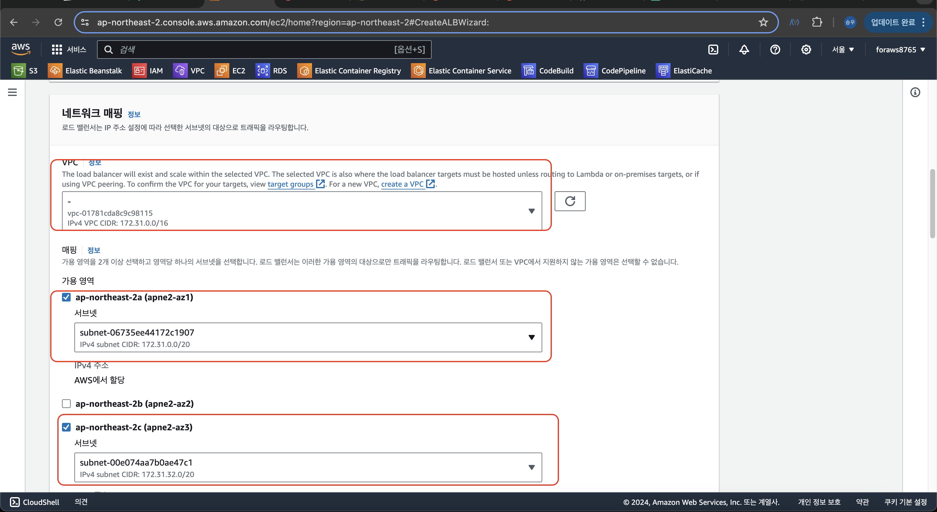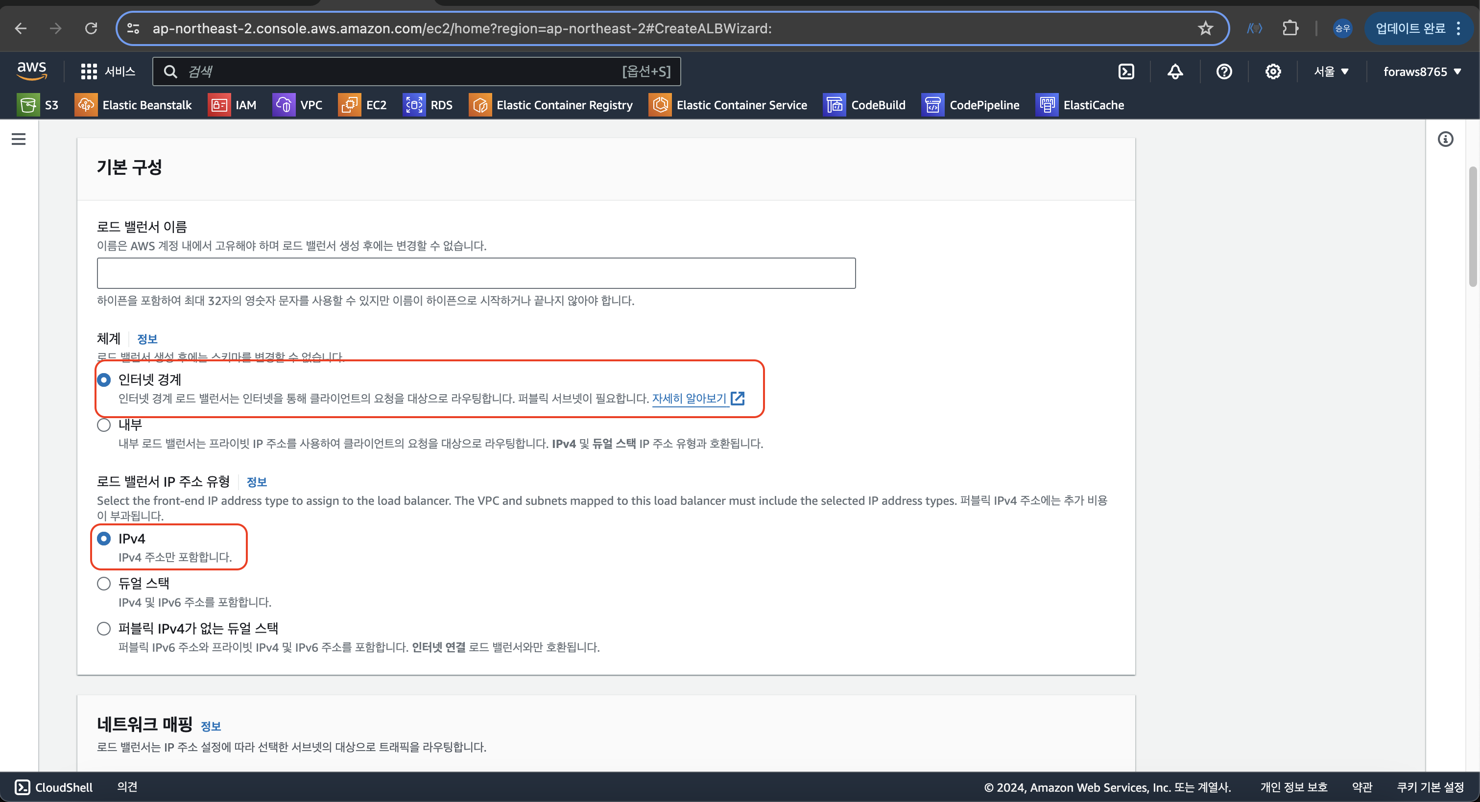 > 리전 선택, 라우팅할 로드 밸런서 선택