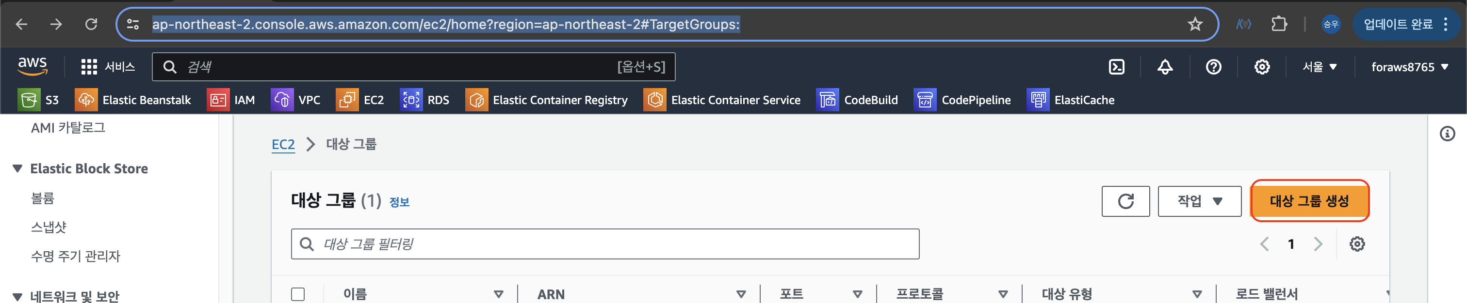 > 대상 그룹 생성