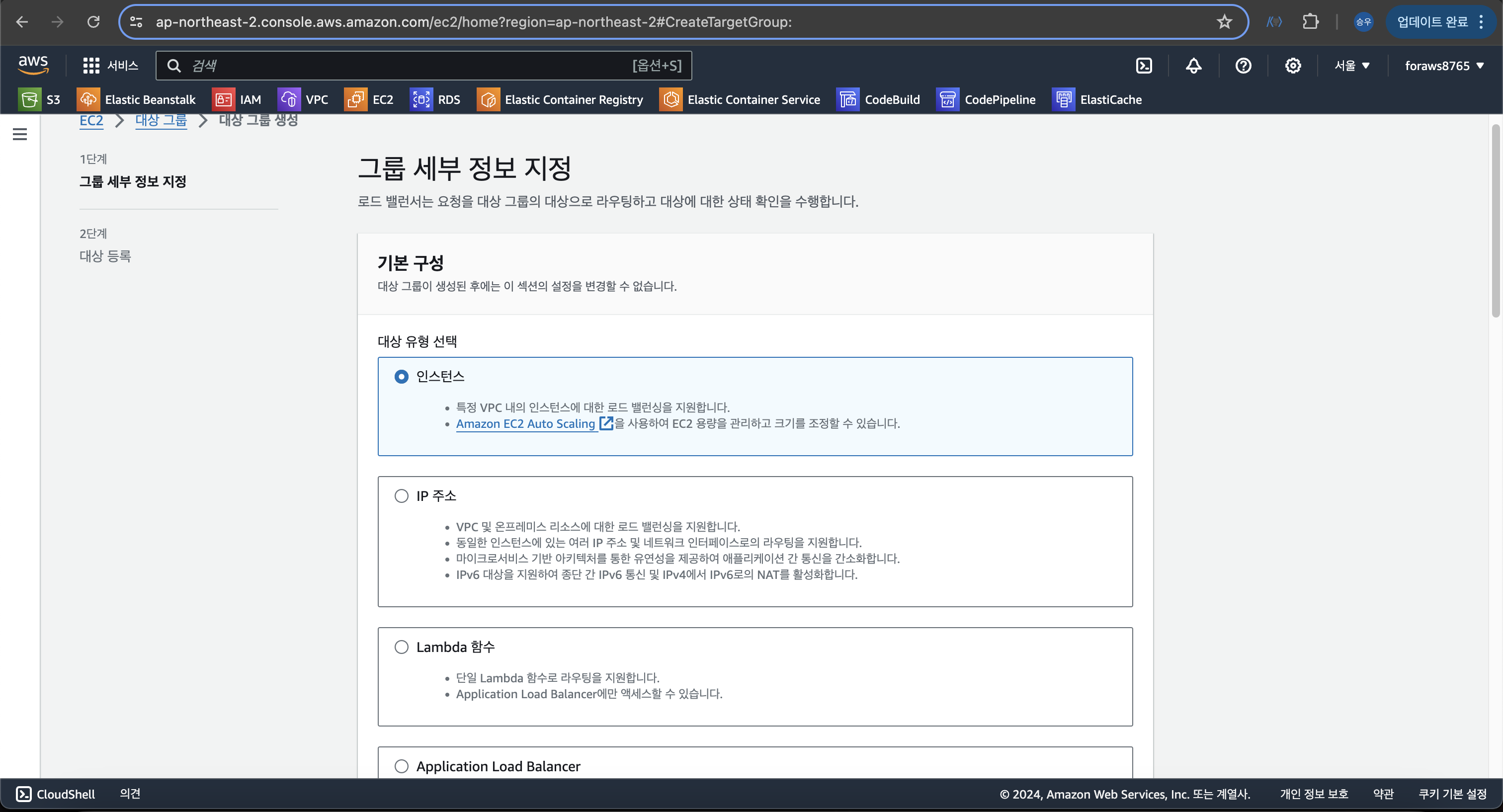 > EC2 -> 대상 그룹 -> 대상 그룹 생성