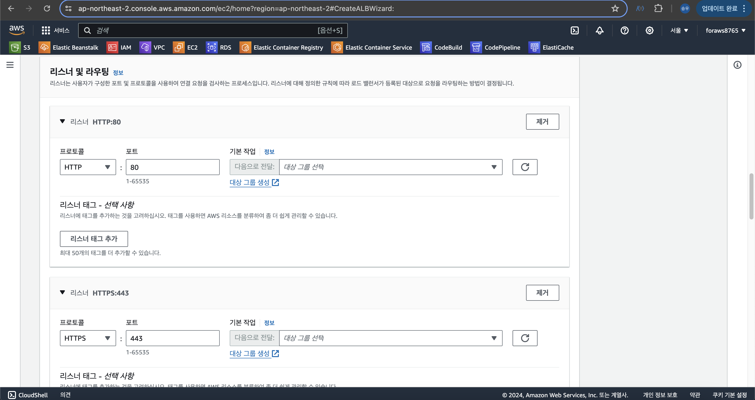 > 리스너 -> HTTP:80 편집