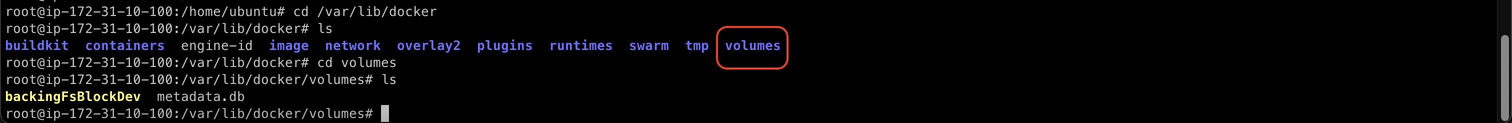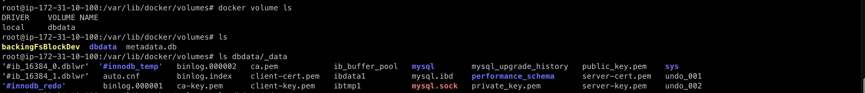 > 위 명령어를 실행하면 /volumes/dbdata 라는 디렉터리가 생성된다.