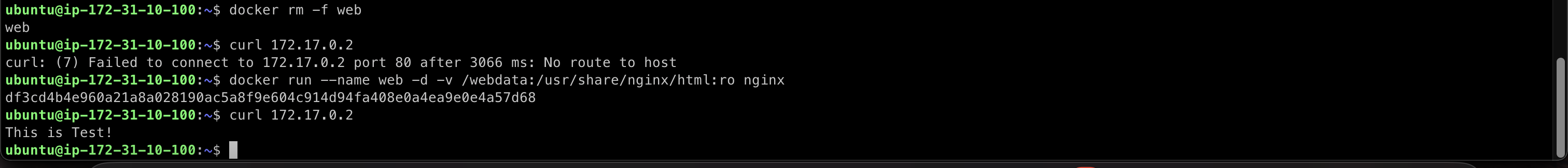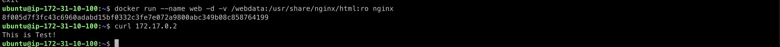 docker run --name web -d -v /webdata:/usr/share/nginx/html:ro nginx
