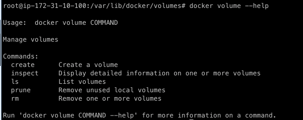 - docker volume prune : 사용하지 않는 모든 로컬 볼륨 삭제