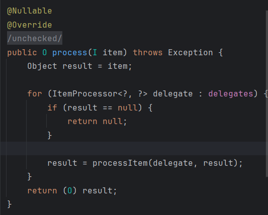 필드를 보면 delegates라는 ItemProcessor형의 리스트를 가지고 있다.