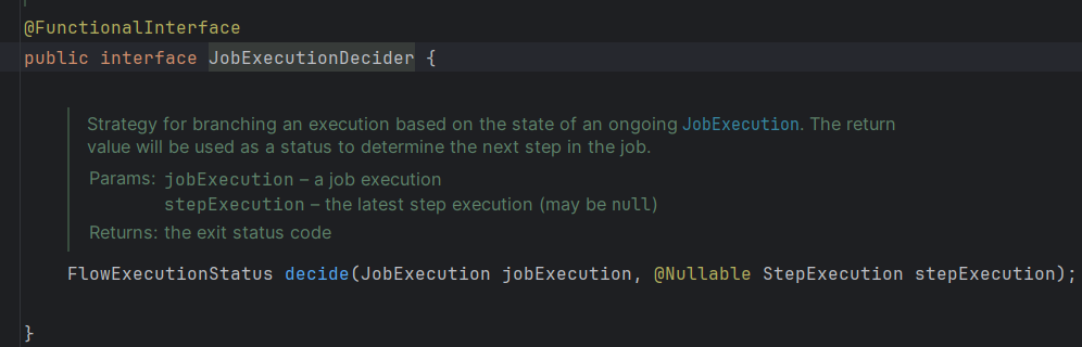 이전에 배웠던 FlowJob을 활용할 수도있지만, JobExecutionDecider로도 조건을 걸어줄수있다.