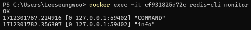 - 레디스로 요청되는 모든 명령어들을 출력하게 된다.