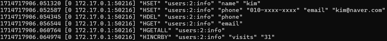 jedis.hset("users:2:info", "name", "kim");