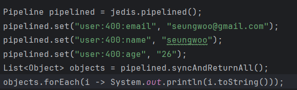 - syncAndReturnAll() : Pipleline객체로 요청한 명령을 하나로 묶어서 요청해준다.