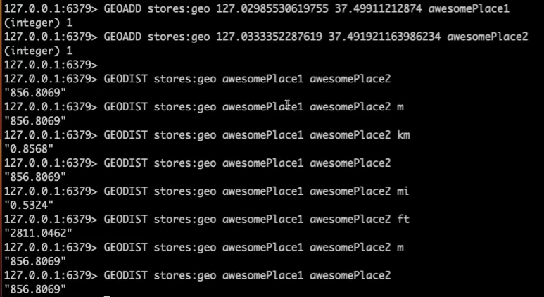 Double geodist = jedis.geodist("stores:1:geo", "some1", "some2");