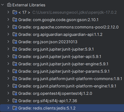 Jedis를 사용하기 위해서 build.gradle에 의존성을 추가해주자!