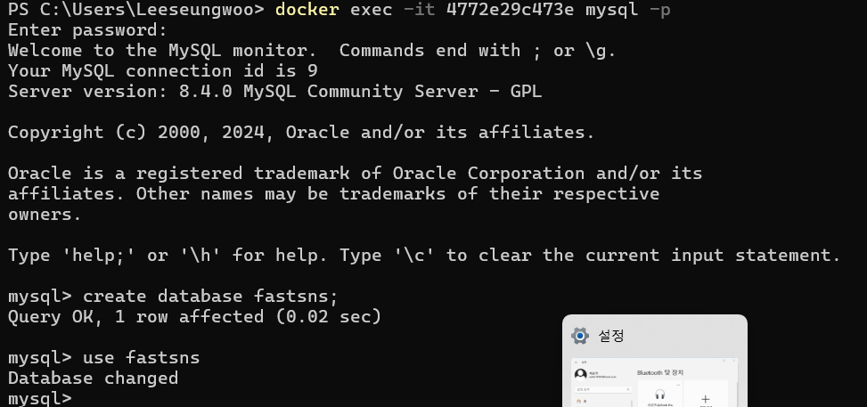 mysql컨테이너를 생성했으면 이번엔 mysql-cli에 접속해보겠다.
