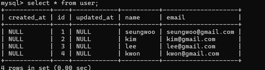 userRepository.save(User.builder().name("seungwoo").email("seungwoo@gmail.com").build());