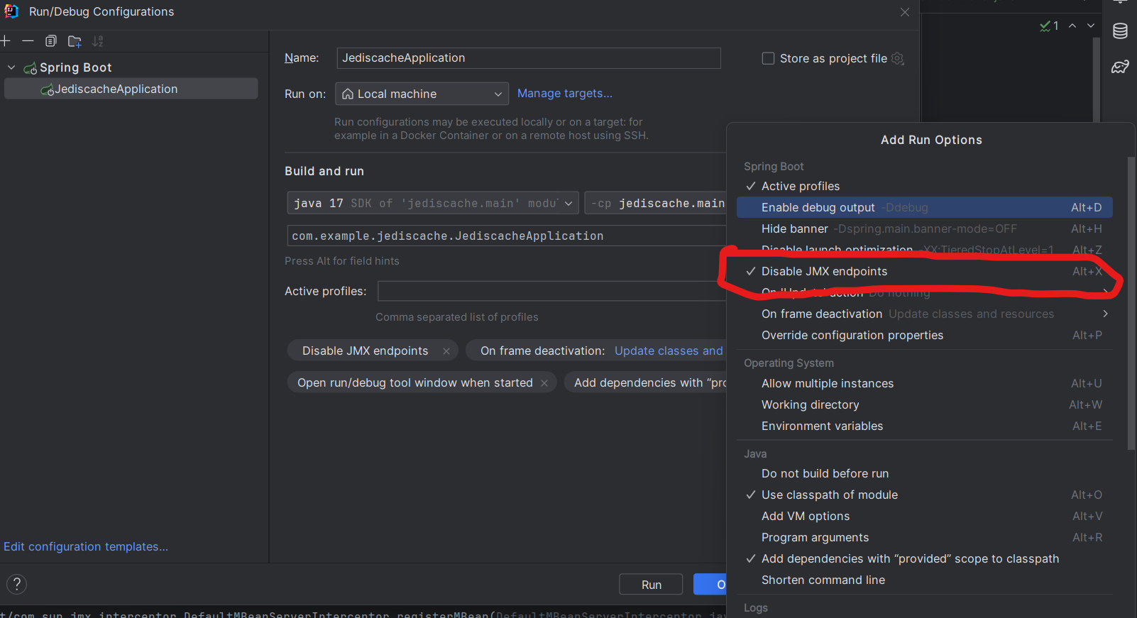 그리고 Disable JMX endpoints도 활성화 시킨후 적용시켰다.