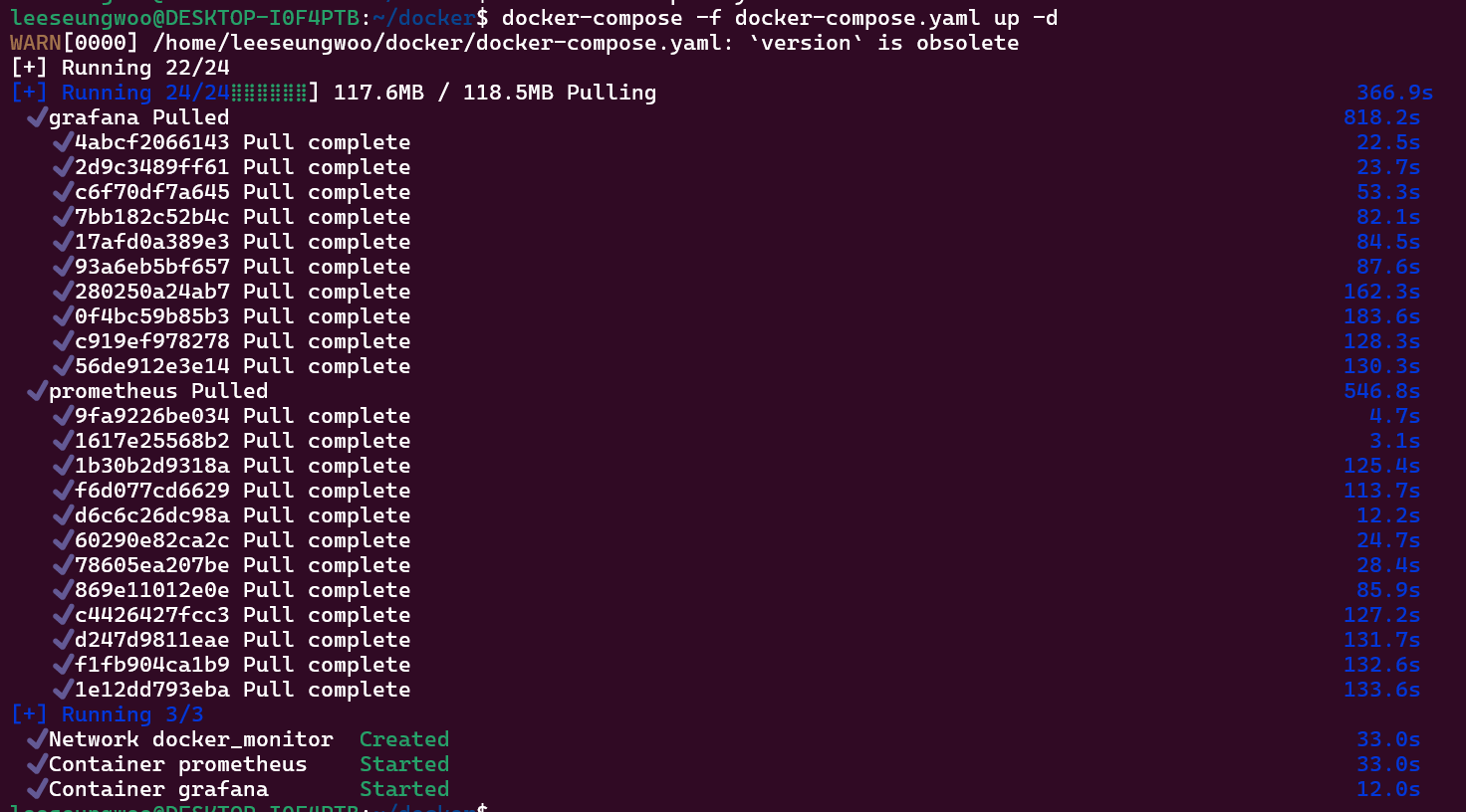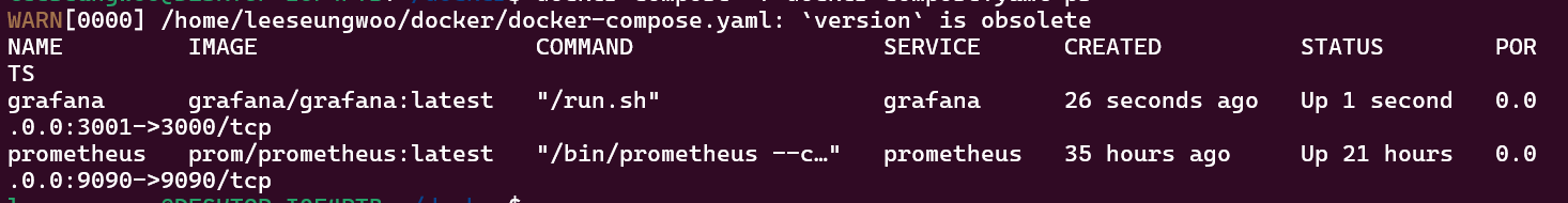 처음에 prometheus는 성공적으로 실행했는데, grafana의 경우 계속 종료를 해서 원인을 분석했다.