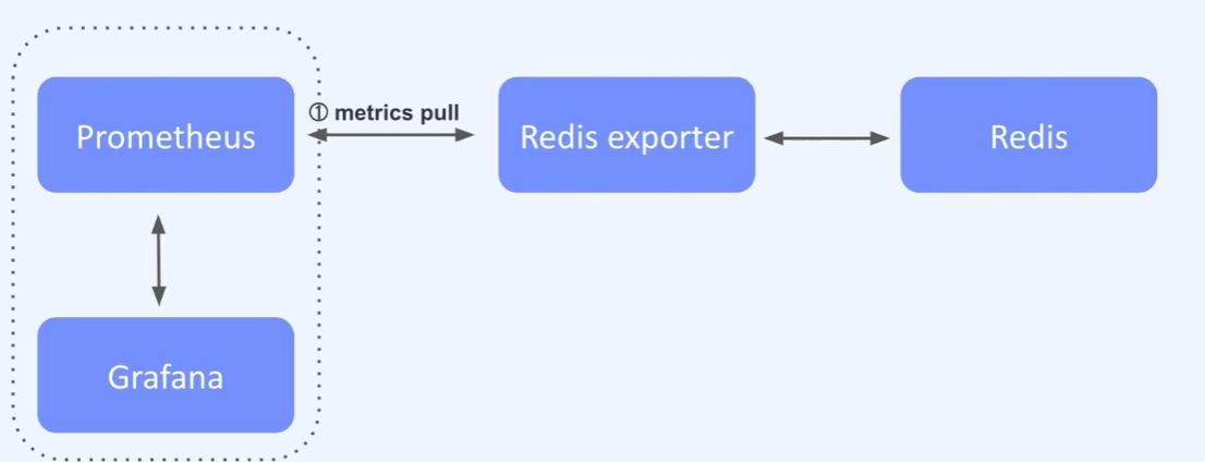 수집에 대한 트리거는 Prometheus에서 Redis exporter로 수집을 요청하면 Redis exporter는 실제 Redis Server로 지표를요청하고, 다시 Prometheus로 전달하게 된다.